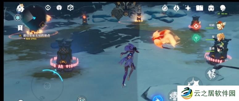 第三步,当第一个仙灵飞到遗迹重机前面的那个柱子和第二个柱子之间,和第三个仙灵互动,这时机关就启动了;